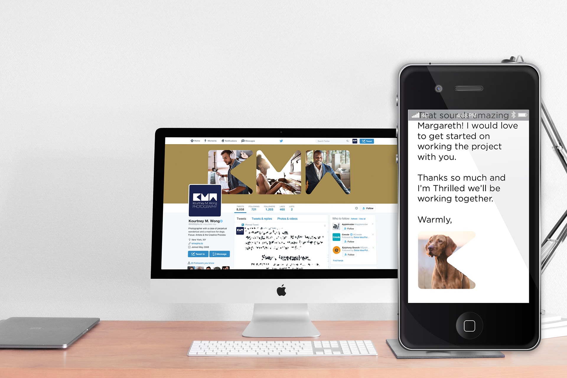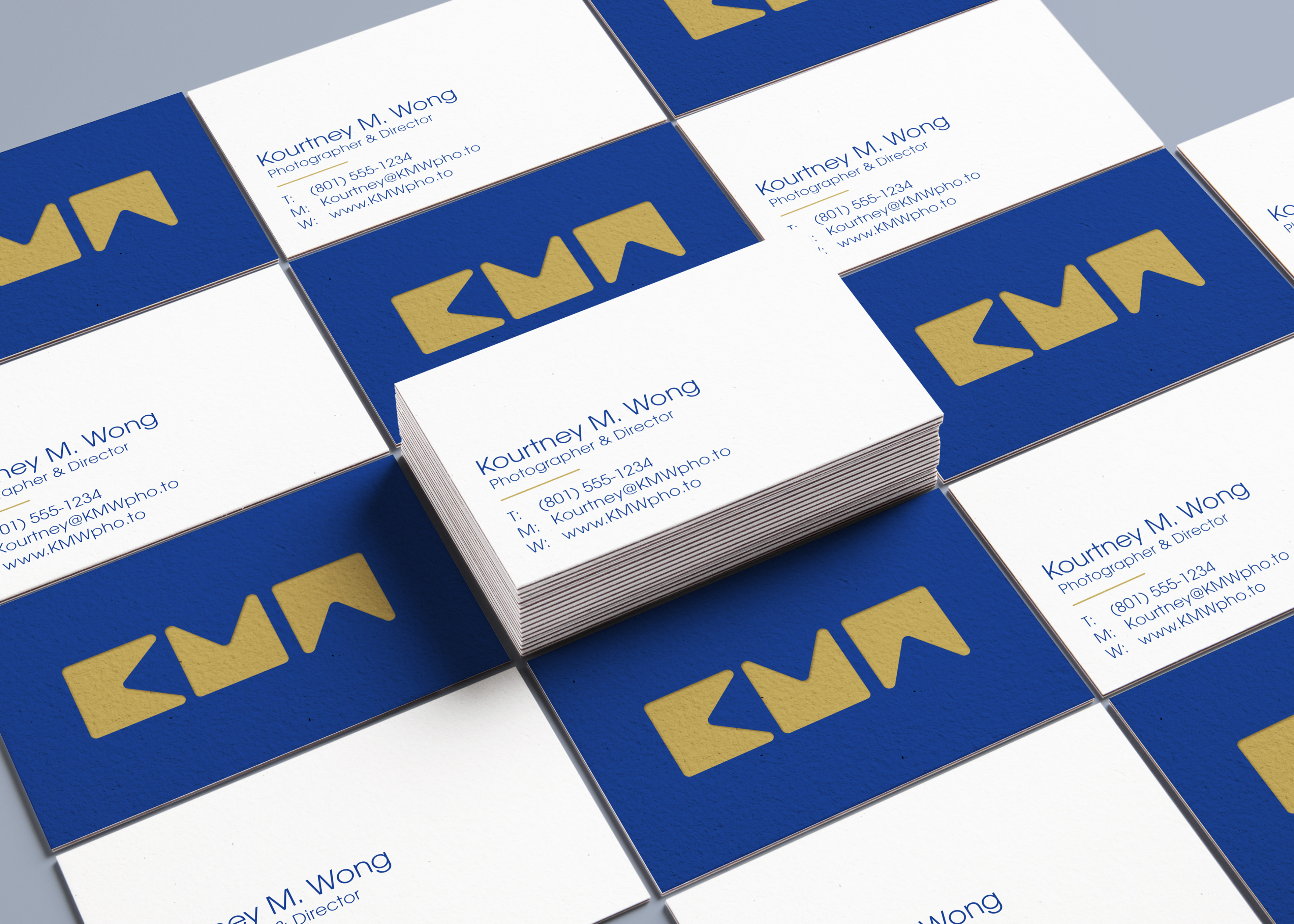 Originally we tried to create a monogram using the client's initials however it wasn't a practical solution. Thus we opted to use a uniformed abstract shape that can represent the letters K, M, and W when rotated which reminded me of the traditional Chinese coin. These coins had a window in the middle of it so we thought this window system would be a good mark for this freelance photographer, because her unique style is using natural lighting capturing her subject matter in their element. This voyeuristic window represents the person and the style of photography that she does.